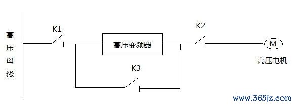 在图5 中,K1、K2、K3 为刀开关,当变频运行时,K1与K2闭合,K3断开,当工频运行时,K1与K2断开,K3闭合。K1、K2、K3有严格的机械和电气互锁关系,不能同时闭合,防止工频与变频同时送电,造成事故。