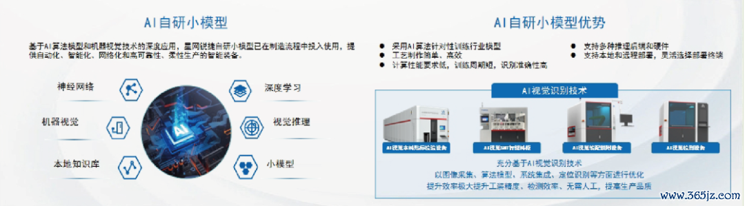 在星网锐捷的AI全流程数字化工厂里,最新的网络通讯产品正通过一条条产线有条不紊地生产,在贴标检测、智能料柜等智慧化仓储设备及装配锁附、AI视觉检验等智能生产设备中都融入了星网锐捷自主研发的AI小模型。针对制造行业定制的AI小模型,不仅能够通过AI算法大大简化生产流程、提升效率,同时小模型对计算性能要求低,训练周期短,识别准确性高,支持多种推理后端和硬件,可以根据生产规模和生产流程进行灵活部署。目前,星网锐捷AI小模型+机器视觉+机械手的一揽子AI方案,已经在众多制造企业中落地,实现仓储、配送、车间等生产全流程AI,助力客户降本增效。